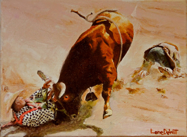 Trying to stick a horn on him, 9X12, Oil on Linen
